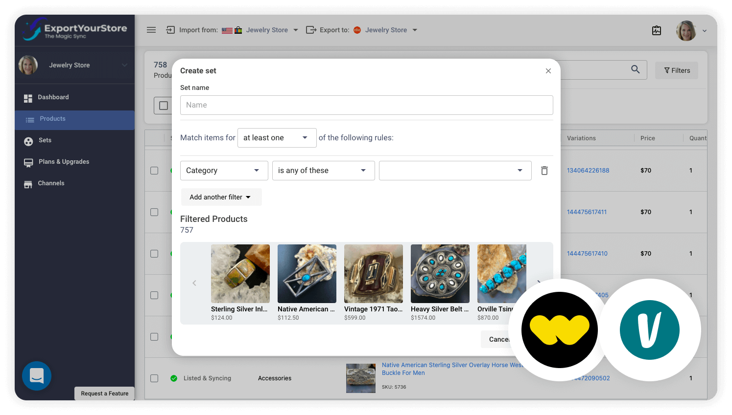 ExportYourStore enables you to select products and arrange them into custom product sets to help you more easily groups and manage products. You'll be able to create product sets from your Whatnot products, then apply rules to these sets when exporting them to Vinted. Use these rules to adjust pricing, customize product dimension units, modify titles, change item condition, and much more.